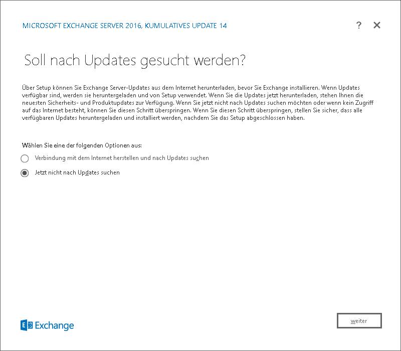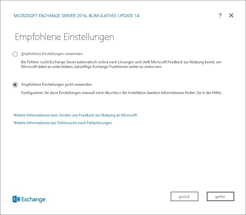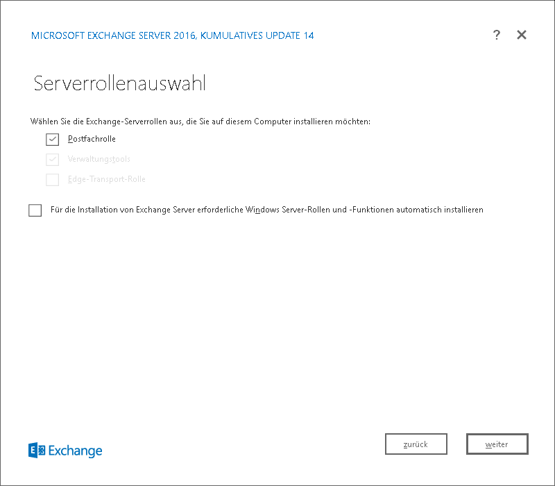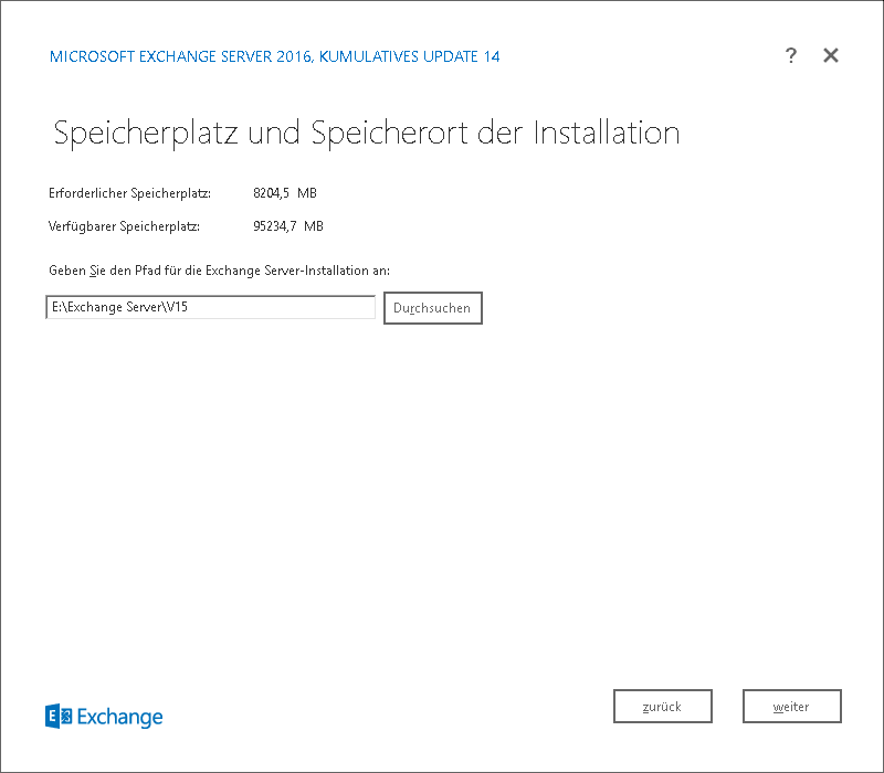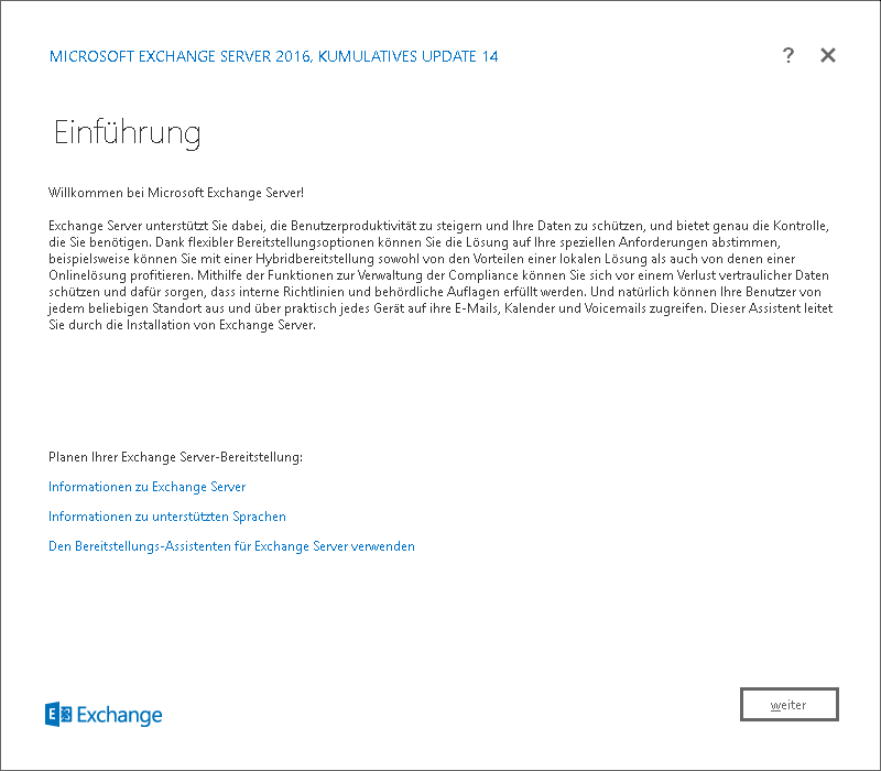 Die Screenshots stammen von einer Installation eines Exchange Servers in eine bestehende Organisation.