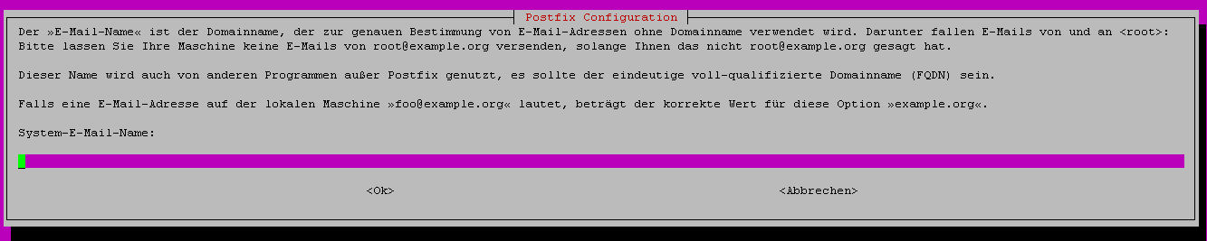 Der MTA Postfix soll nur dazu dienen Mails zu versenden. So können Informationen, zum Beispiel an den Admin, vom System versendet werden oder Webseiten können mit Ihren Benutzern kommunizieren, wenn beispielsweise ein Passwort zurückgesetzt werden soll.