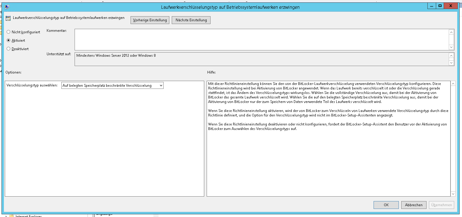 Computerkonfiguration → Richtlinien → Administrative Vorlagen → Windows-Komponenten → Bitlocker-Laufwerksverschlüsselung