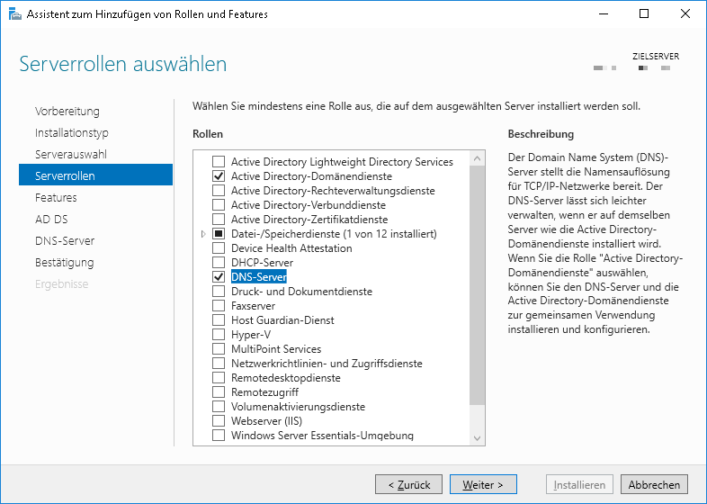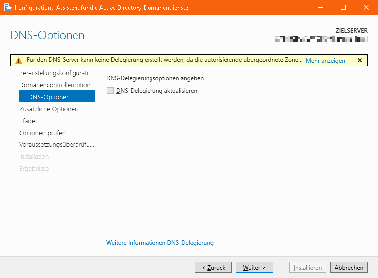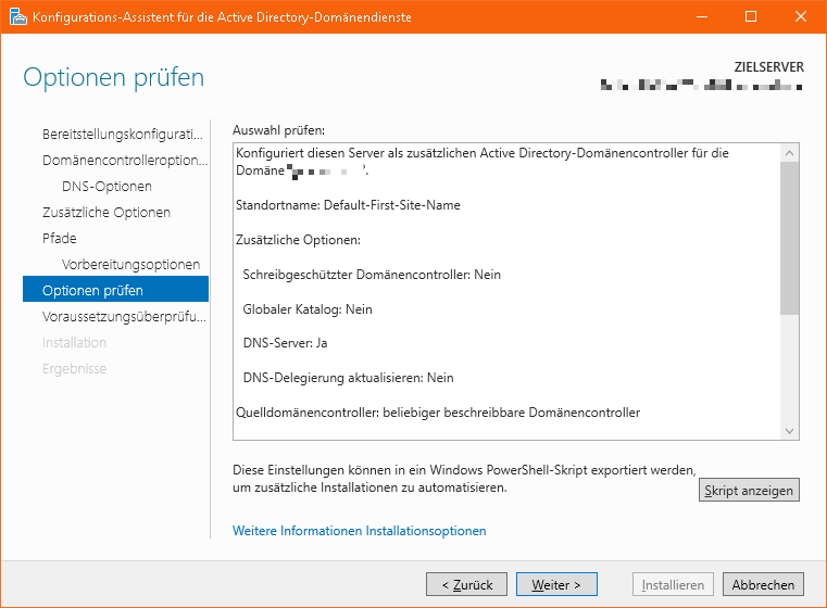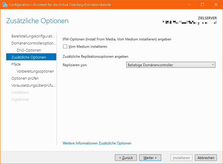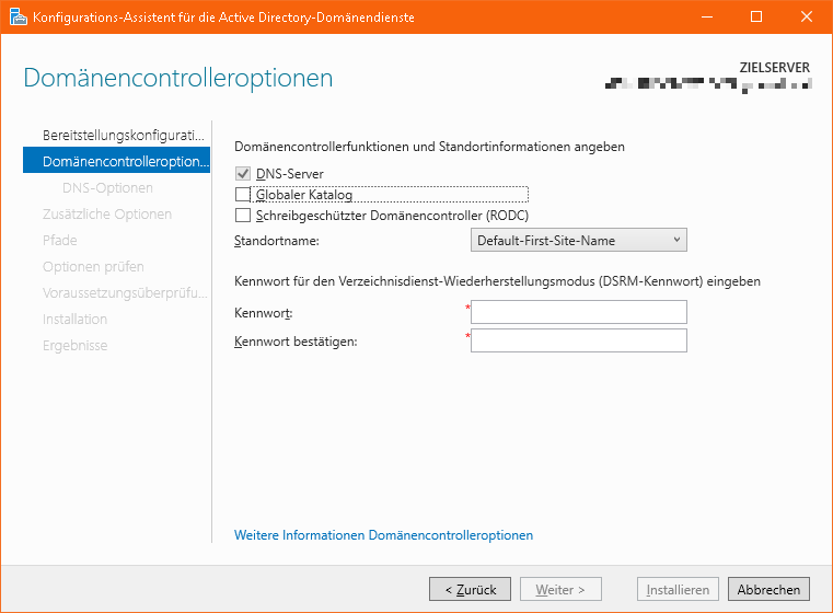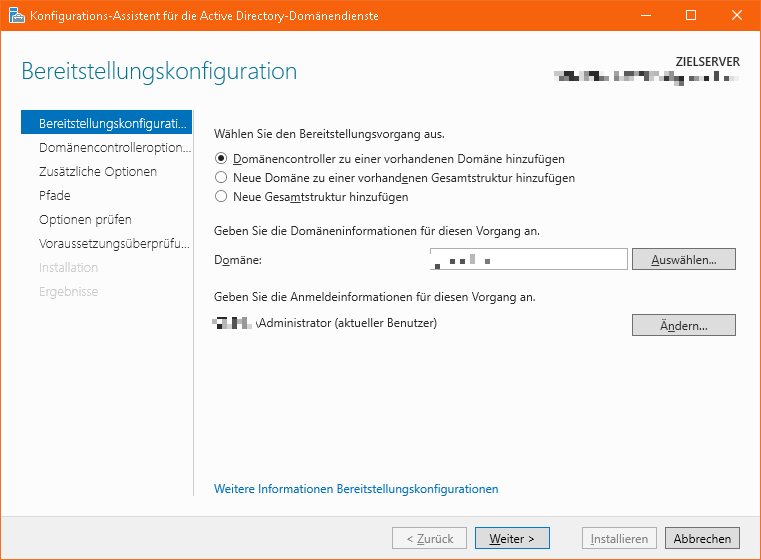 Rolle konfigurieren (zusätzlicher DC in vorhandener Domäne)