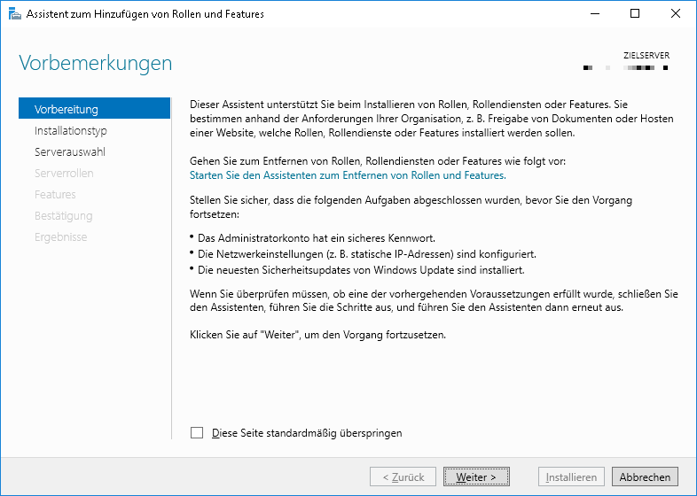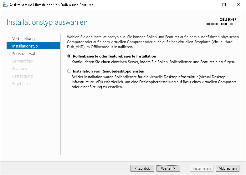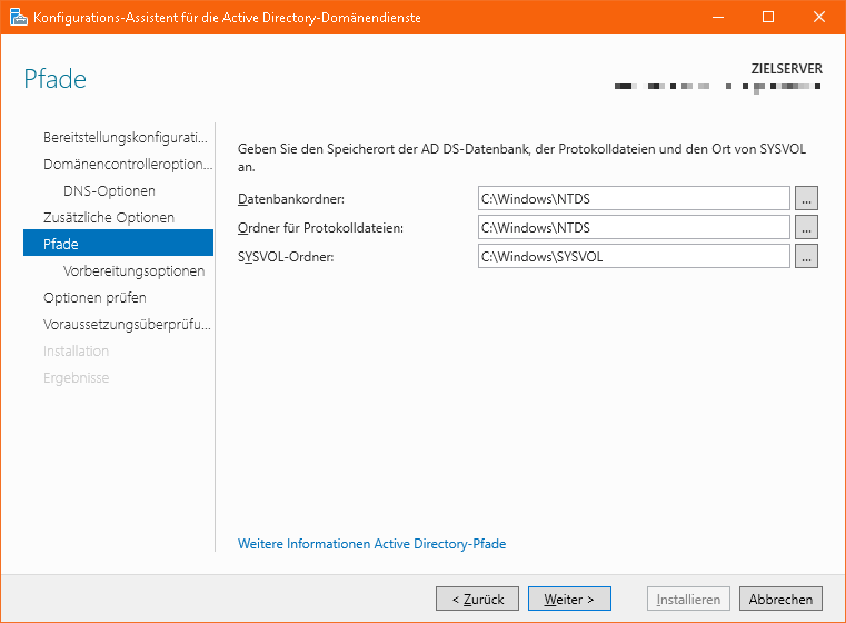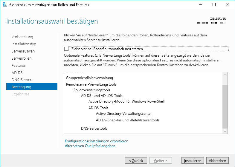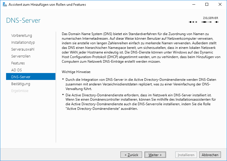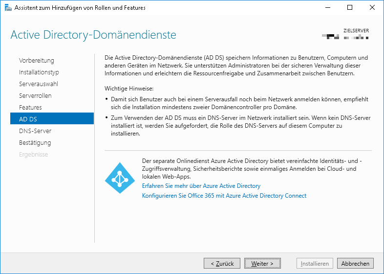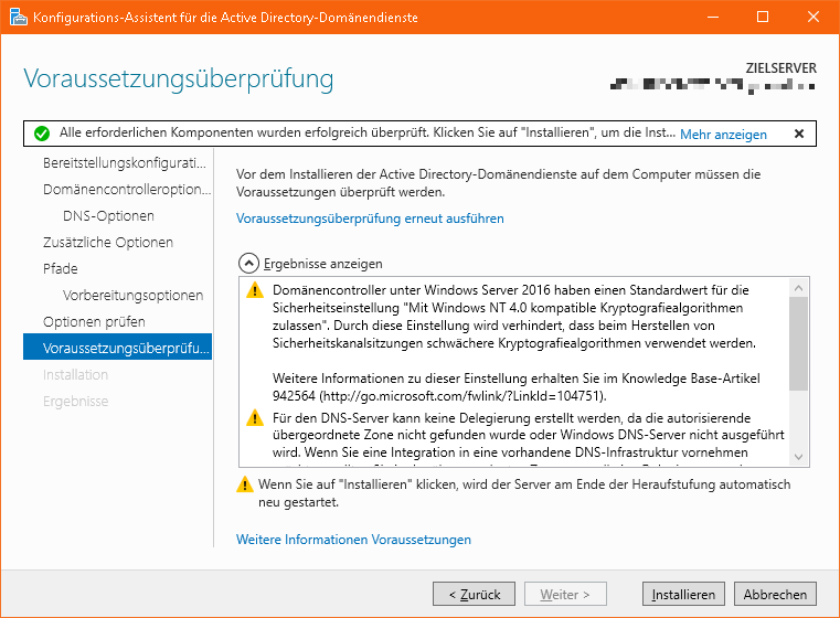 - Domänen-Name ist festgelegt worden (kann NICHT im Nachgang geändert werden)