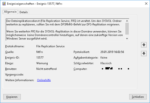 Migration NTFRS auf DFSR - Event 13577 NtFrs